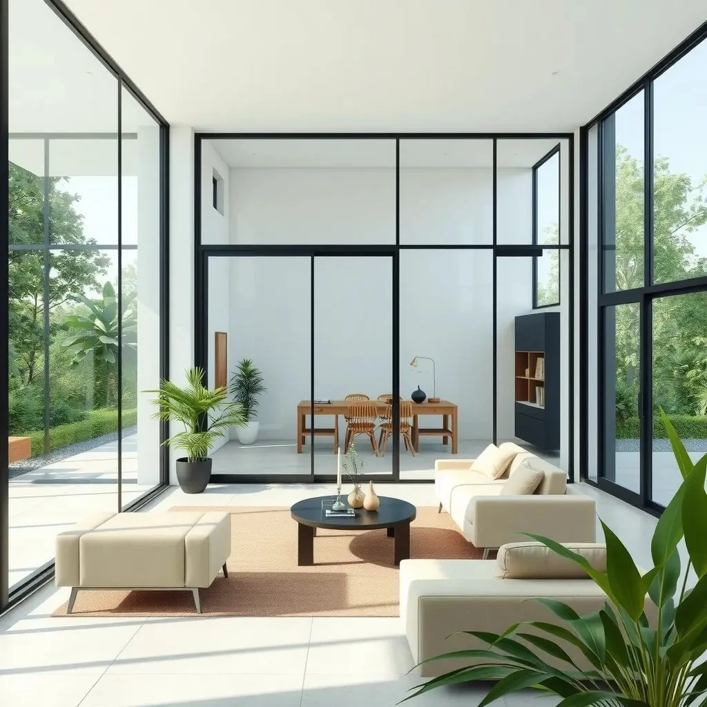 - Прозрачное стекло: Обеспечивает максимальную освещенность и визуальную связь между зонами.